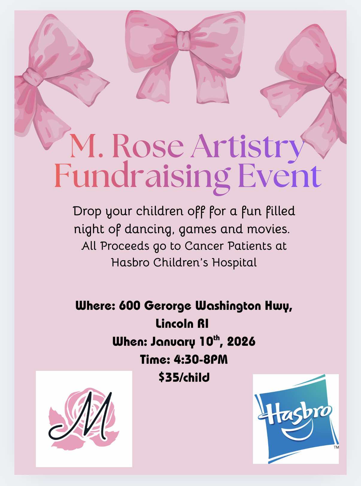 Drop your children off for fun filled night of dancing, games and movies. All proceeds go to cancer patients at Hasbro Children’s Hospital.